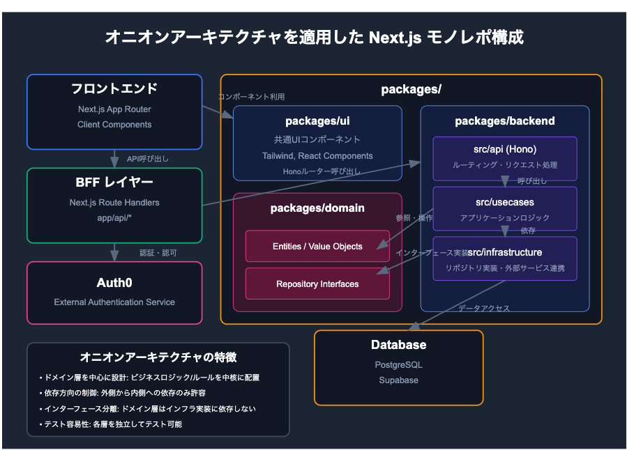 これらの課題を解決するために、BFFパターンとオニオンアーキテクチャを導入することにしました。
